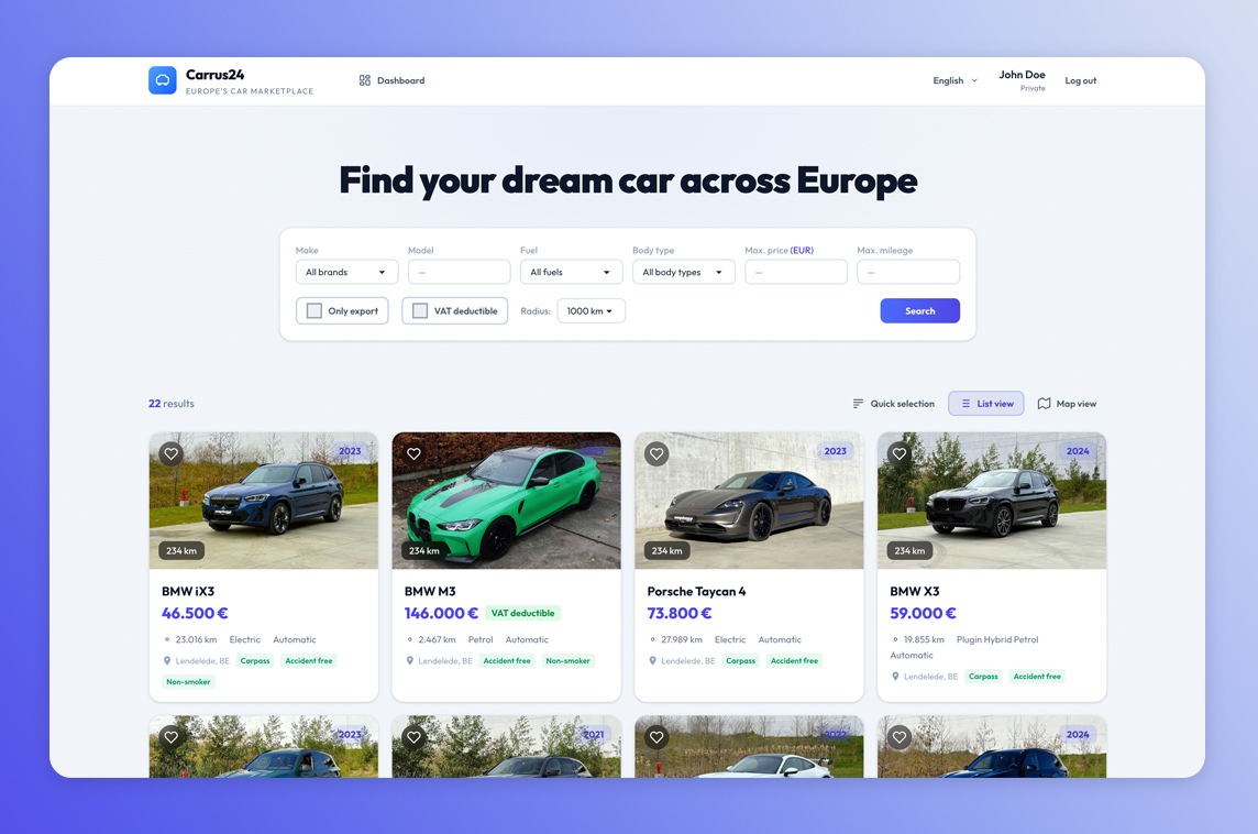 "Carrus24 is a European B2B marketplace and dealer management platform for the professional automotive trade.