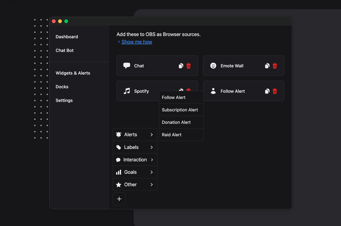 Unify all of your channel events into a single set of widgets with Casterlabs' powerful multi-account support. We have all the bells and whistles to ensure your streams are as smooth as butter."
