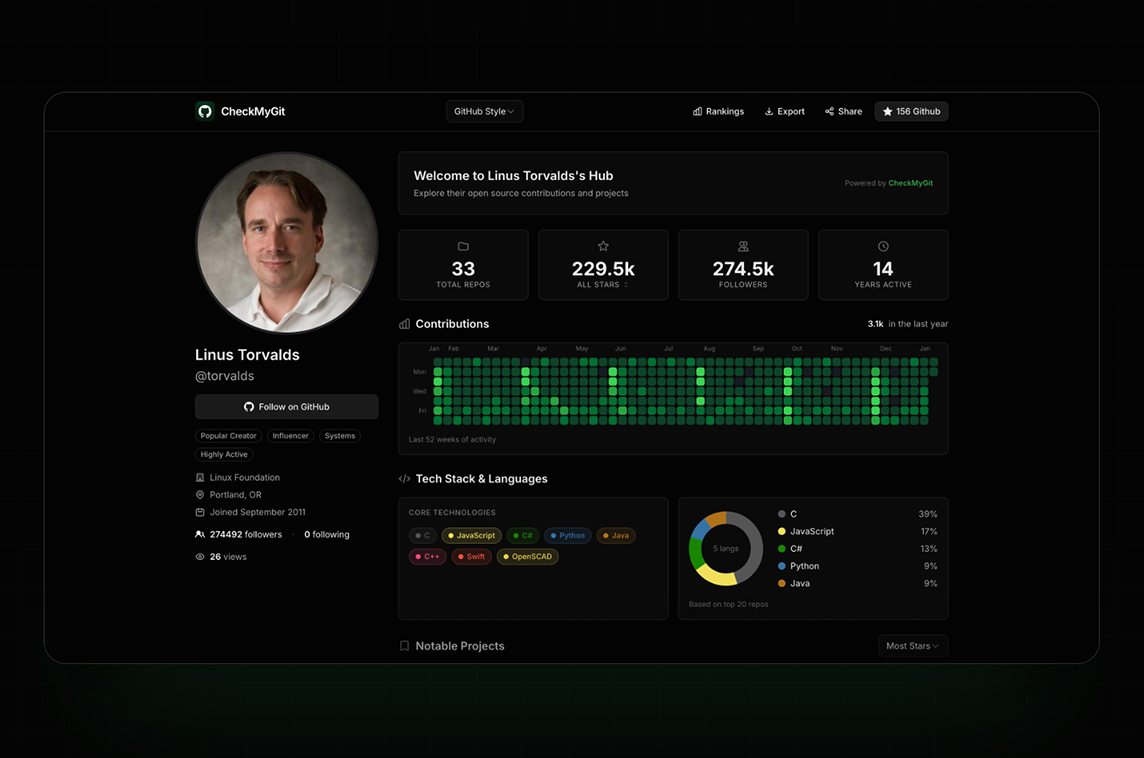 CheckMyGit is open-source and built using Svelte."