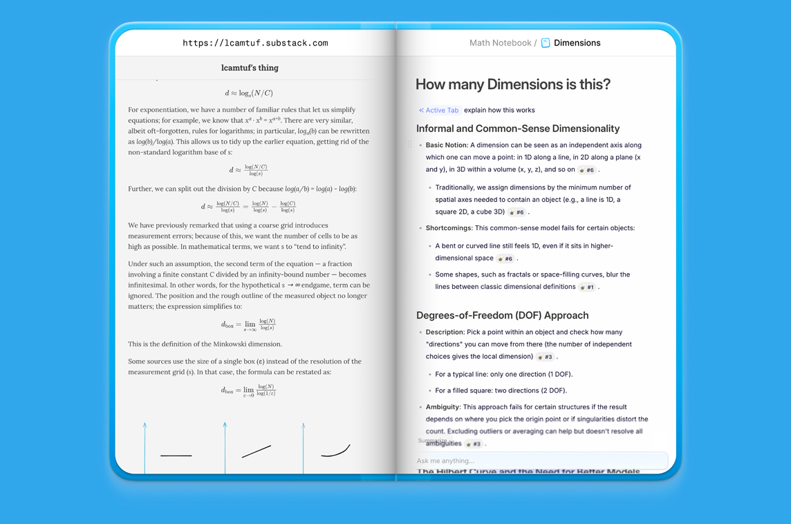 It’s meant for simultaneous research and thinking that minimizes the grunt work: manually searching, opening windows & tabs, scrolling, copying and pasting into a document editor.