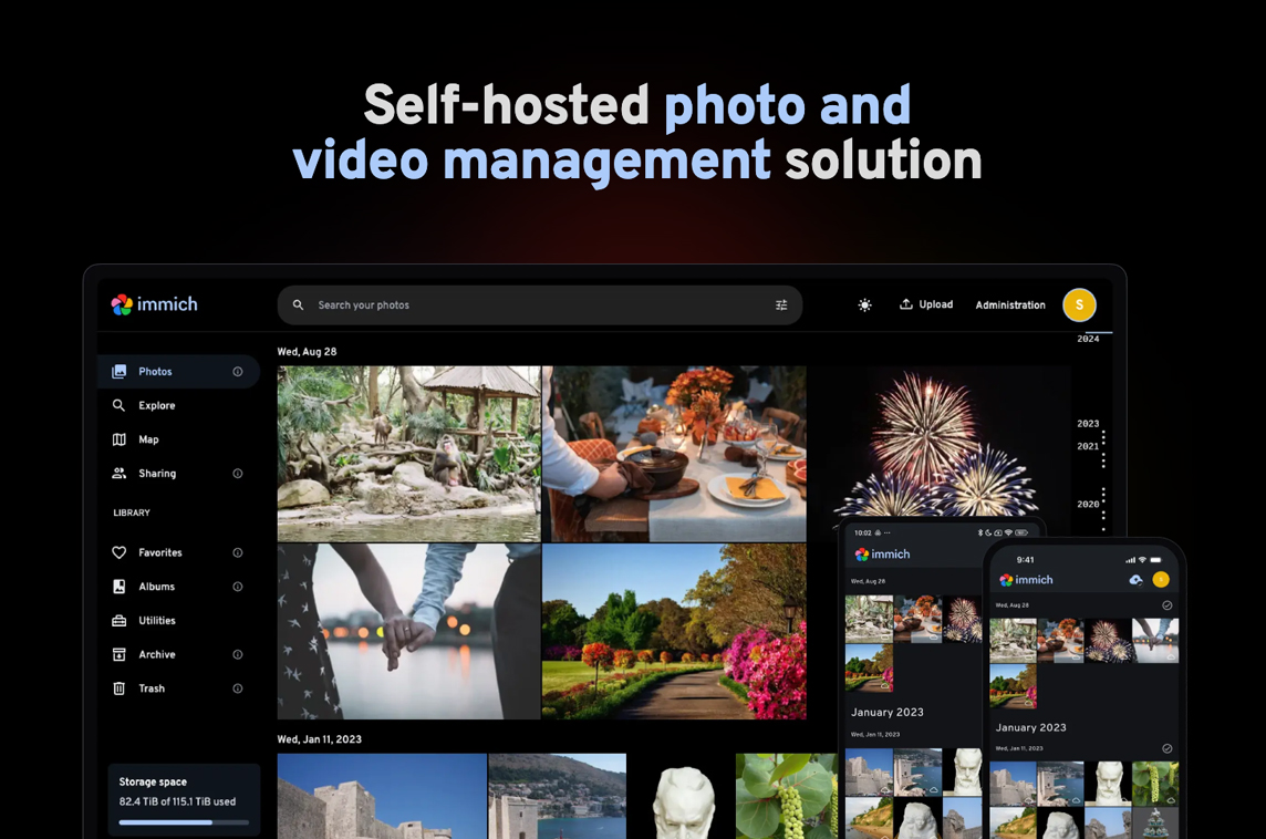 "Immich is an open-source, high performance self-hosted management solution for videos and photos.