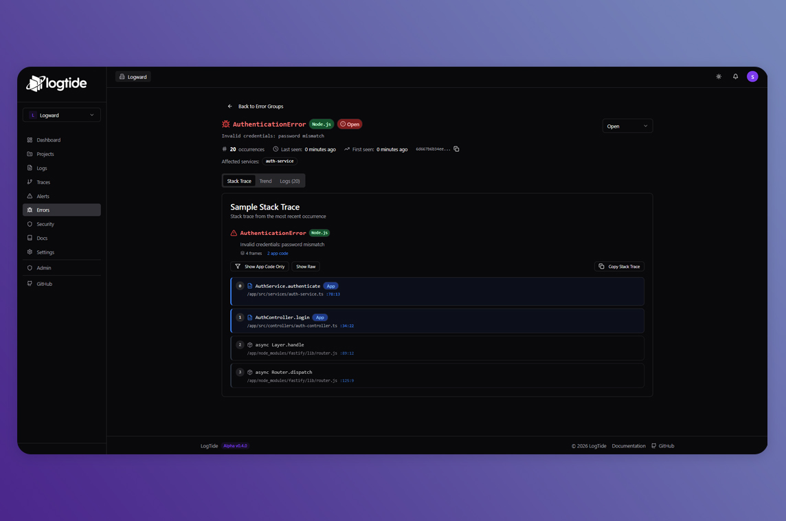 The LogTide dashboard is made with SvelteKit!"