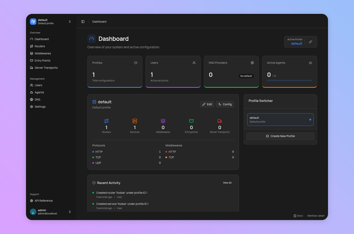 "Mantræ is a web-based configuration manager for Traefik's dynamic configuration file. It provides a clean, intuitive interface to manage your routers, middleware, and services without editing YAML or TOML files manually."