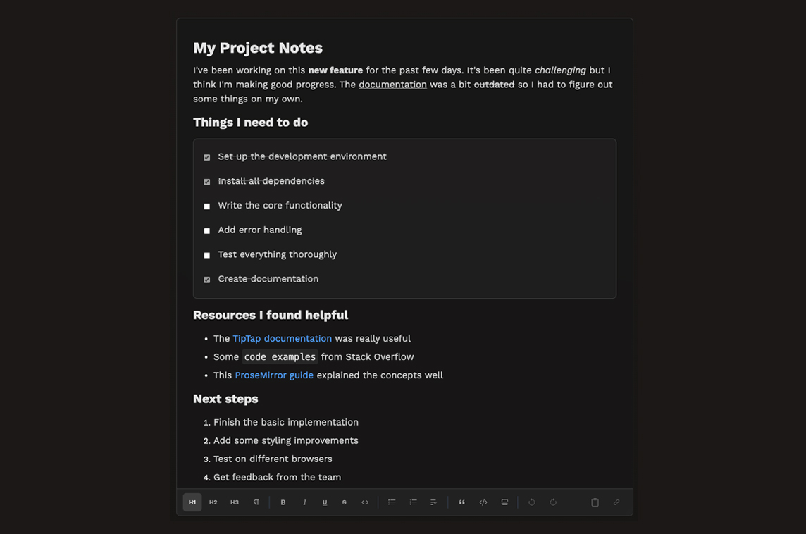 It empowers developers to effortlessly craft rich text editors, liberating them from the intricacies of underlying technologies, style management, and related complexities."